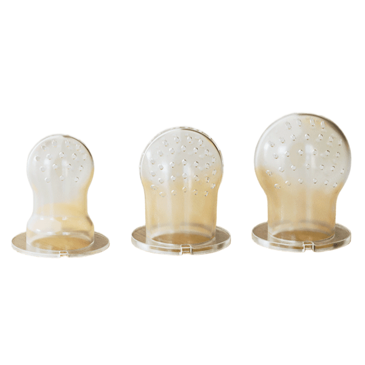 Nos tétines sont adaptées dès 4-6 mois, quand bébé commence la diversification alimentaire. Elles permettent d’introduire les fruits en toute sécurité.